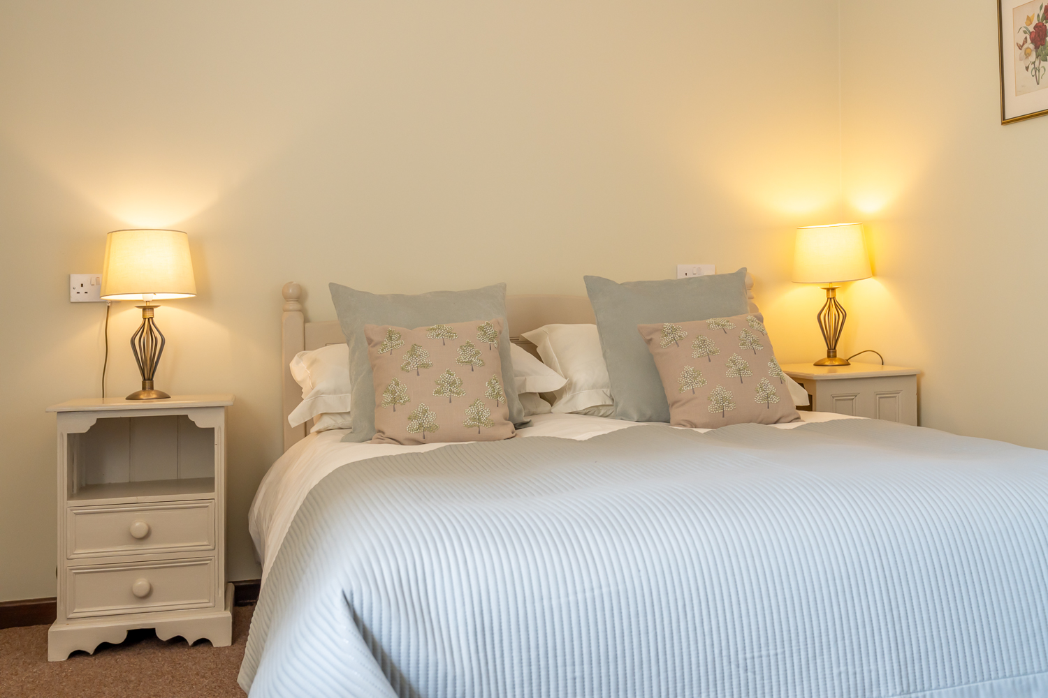 - The main bedroom has a king size bed with windows looking into the courtyard and out over the neighbouring farm cottages. The second bedroom has two single beds.
